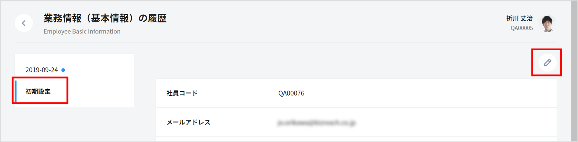 3. 履歴画面の左側に表示されている履歴の適用日を選択し、画面右上のエンピツアイコンをクリックします。