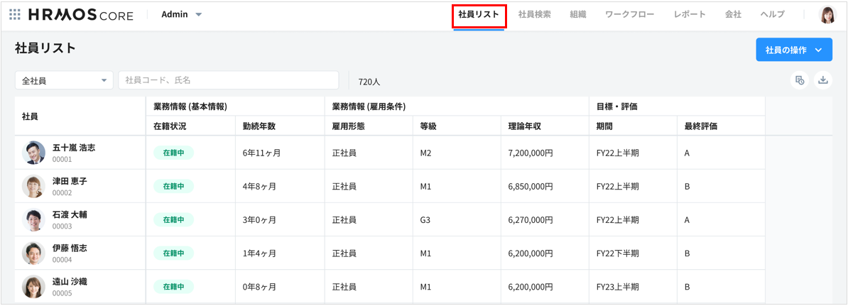 1. Admin(管理画面)の「社員リスト」タブを開きます。