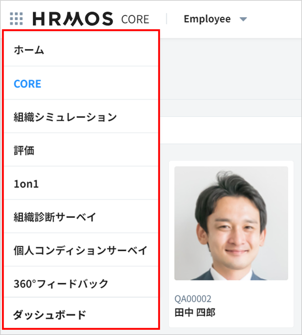 HRMOSの画面左上の (ランチャーアイコン)、および、ランチャーアイコンをクリックして表示されるモジュールを非表示にすることはできません。