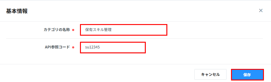 ・例として、「カテゴリの名称:保有スキル管理」を登録します。