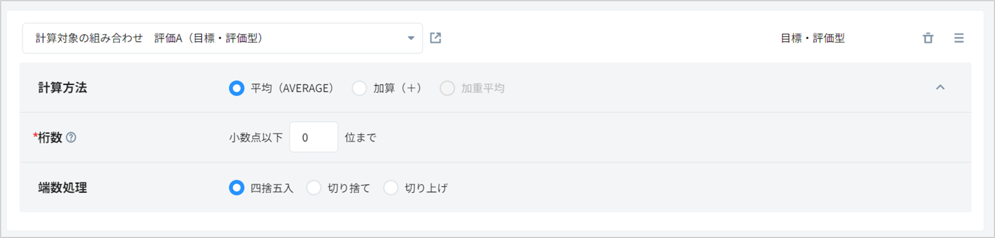 プルダウンより、計算方法などの詳細をそれぞれ設定します。