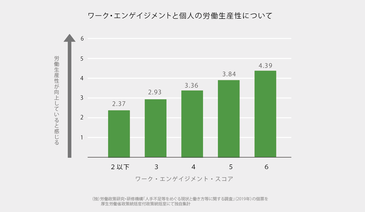 P198 第2-(3)-11図 ワーク・エンゲイジメントと個人の労働生産性について