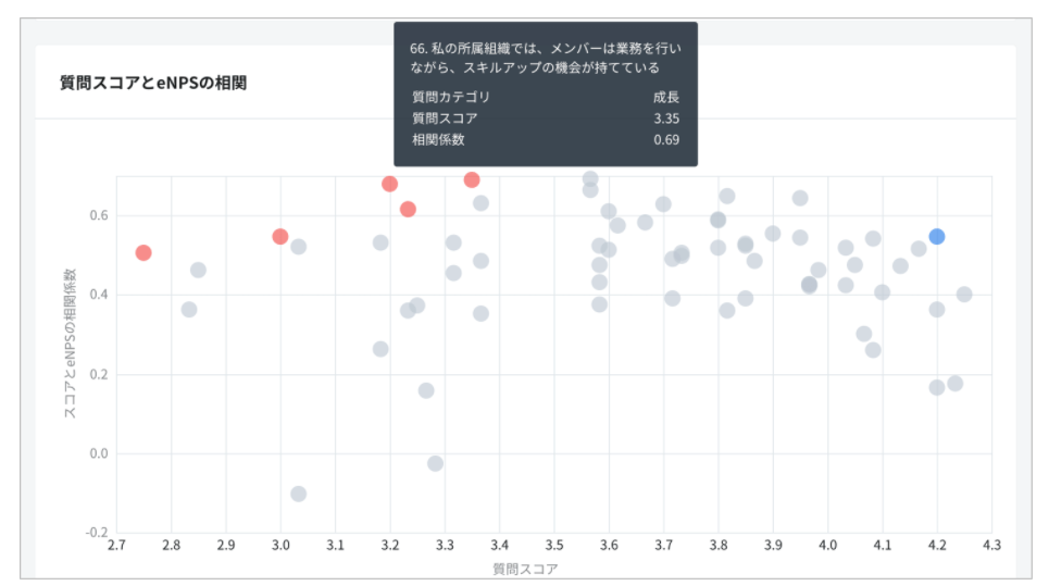 eNPSとの相関関係の数値読み解きの事例を記載しております。