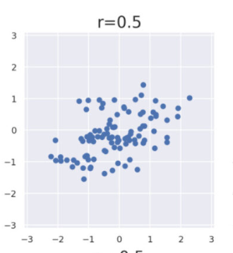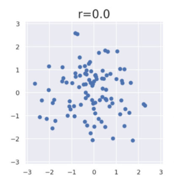 スコアの配置が1本の線に近づいていきます。(※r=相関の数値を示す単位のこと)
