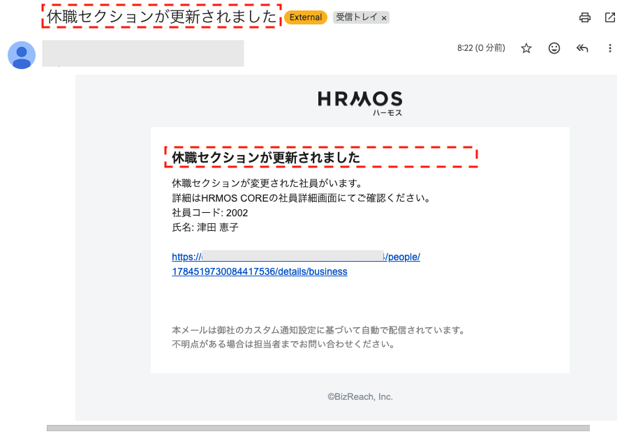 <サンプル画像>※6.通知文面における{detailUrl}は、Employee画面のURLとなっております。