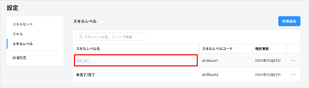 1. スキルレベルの一覧画面で、編集したいスキルレベル名をクリックする
