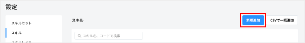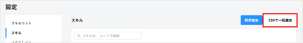 1. スキルの一覧画面で、「CSVで一括追加」をクリックする