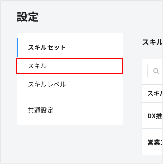 スキル管理に移動し、画面上部にあるナビメニューの「設定」をクリックすると、スキル管理の設定画面が表示されます。