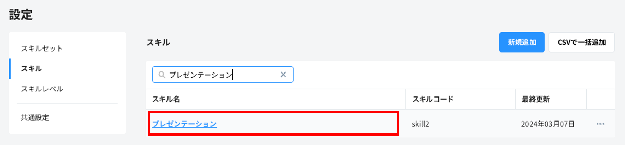 1. スキルの一覧画面で、編集したいスキル名をクリックする