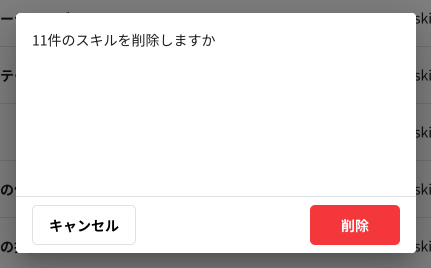 モーダルに表示されているスキルの件数を確認したのち、「削除」をクリックすると、削除されます。