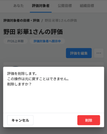 ・社員画面 > 評価の削除