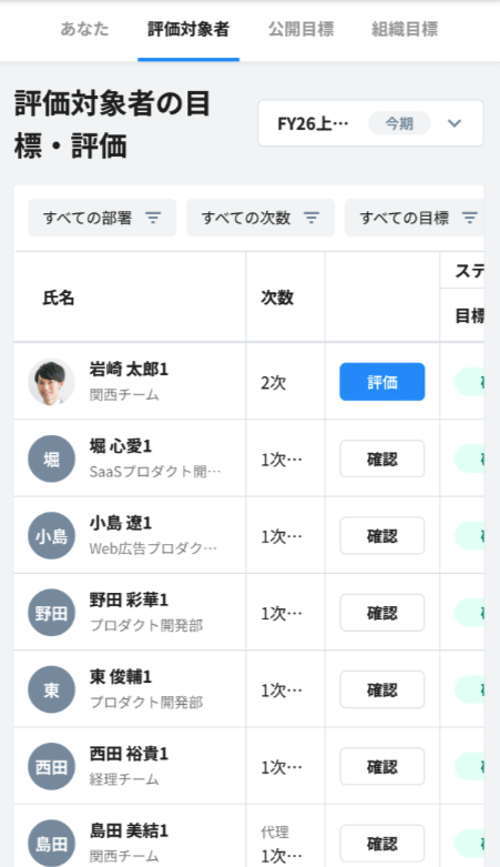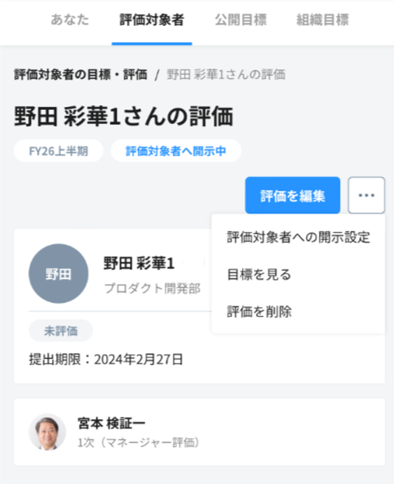 ・社員画面 > 評価の閲覧・編集