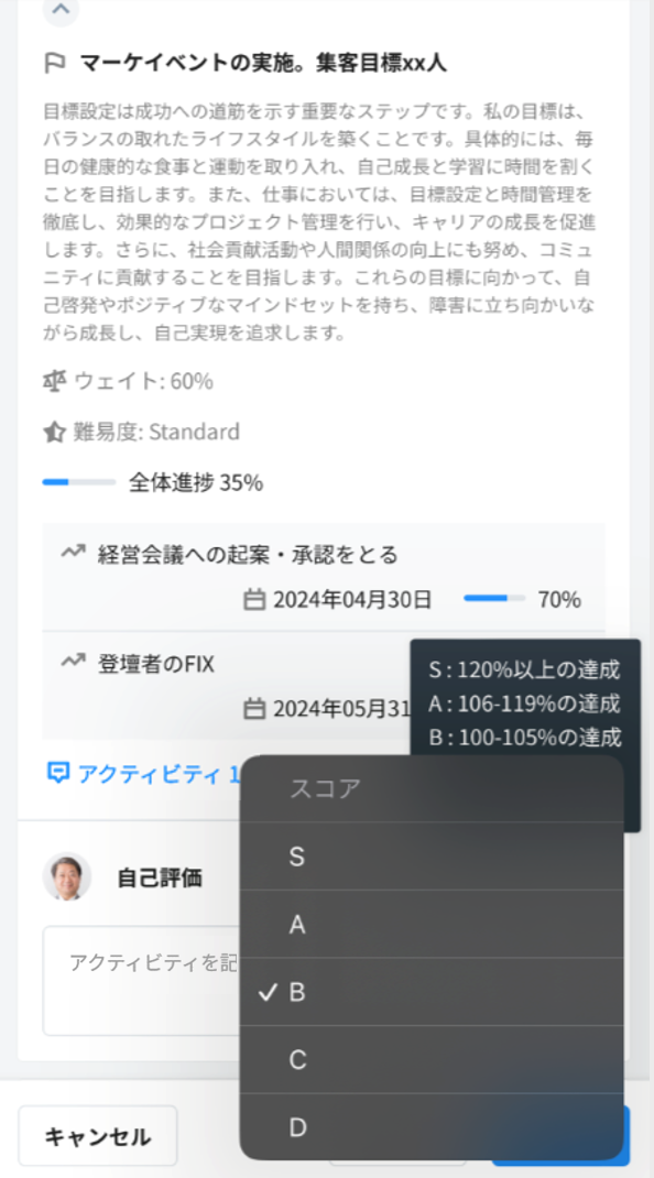 ・社員画面 > 目標・評価の進捗