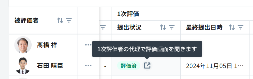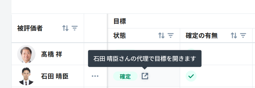 ・権限付社員として、被評価者の目標や評価を代理操作する