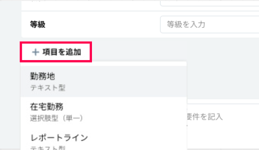 「項目を追加」ボタンから、企業独自に追加したカスタム項目をポジション情報に含めることもできます。