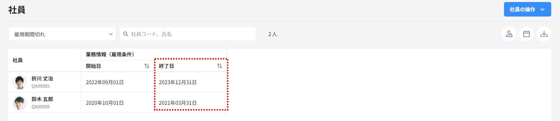 ①名称の登録:雇用期間切れ