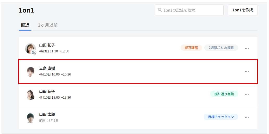 1. 1on1 の日時を変更したい相手をクリックします。
