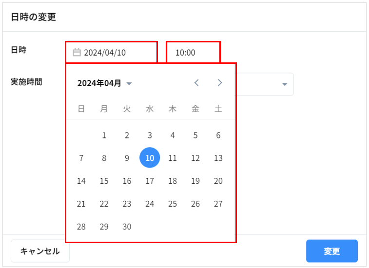 3. 日付をクリックするとカレンダーが表示されるので変更日を選択します。