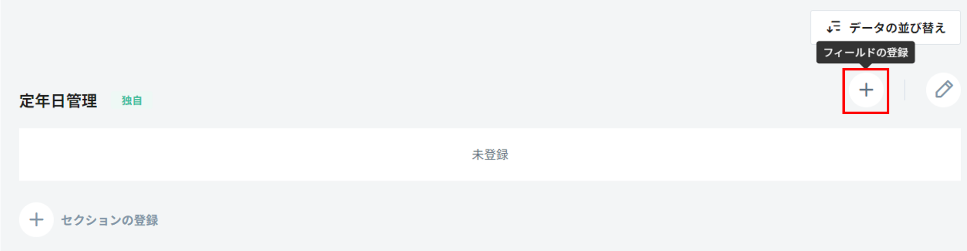 5. 登録したセクション右上の をクリックし、フィールドを追加します。