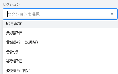 管理画面上で既に設定済みのセクションを選択できます。
