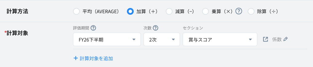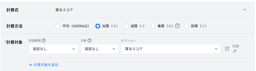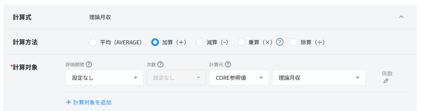 ※計算対象に選択できるCORE参照値は「給与/賞与/理論月収/理論年収」のみです。それ以外の項目は選択いただけません。詳細は<こちら>をご参照ください。