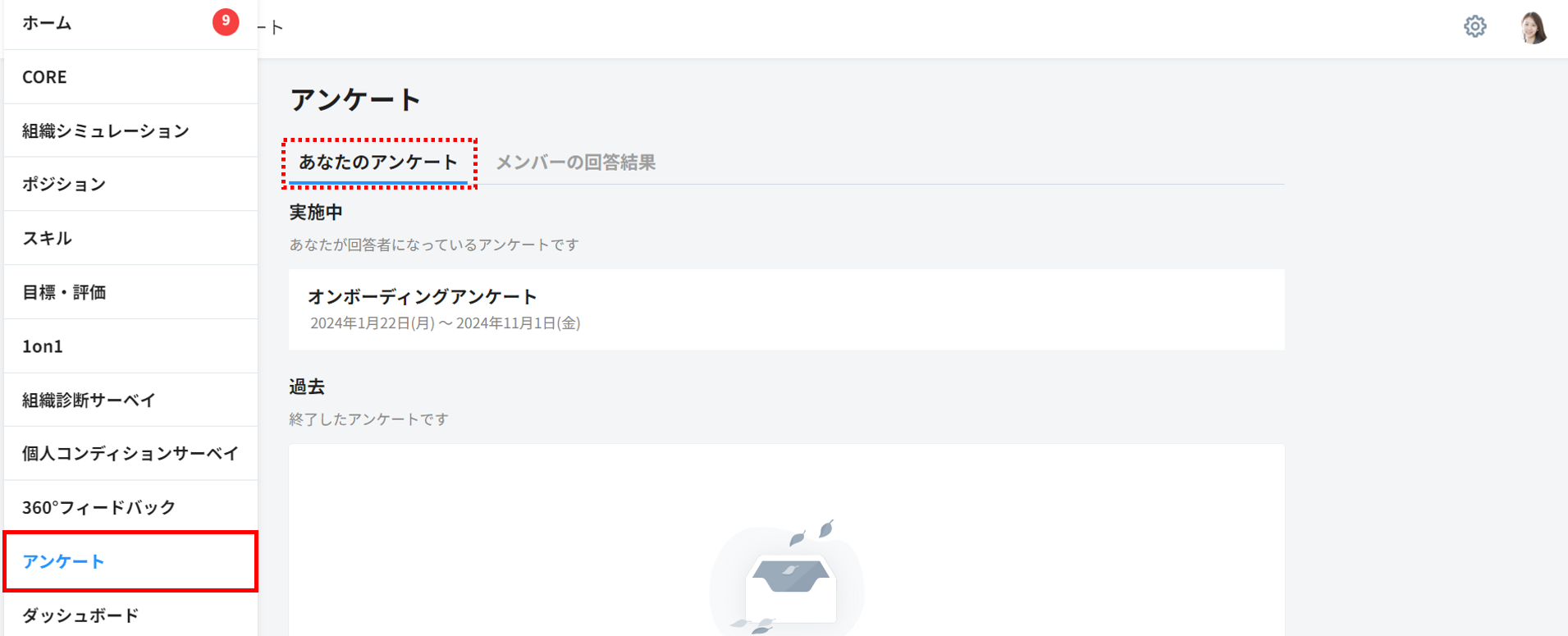 1. ランチャーアイコンから「アンケート」> 「あなたのアンケート」タブを開きます。