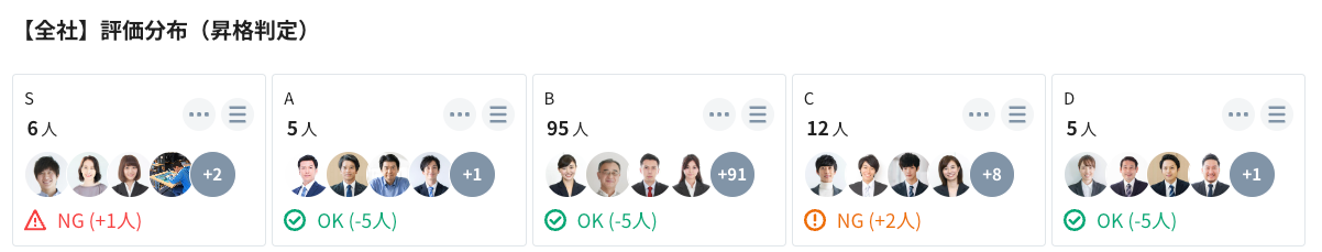 ・S評価が全社平均で5%以内におさまっているか確認することができる