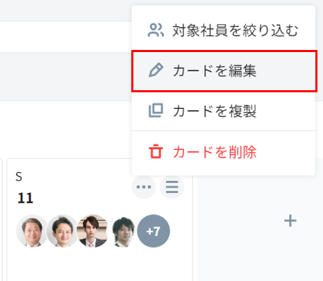 1. 該当の指標カードの、から「カードを編集」をクリックします。