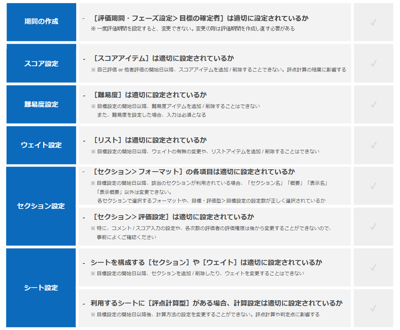 以下のチェックリストを参考に、運用開始前に十分にご確認ください。上記設定を確認後、以下の項目についてもご確認ください。
