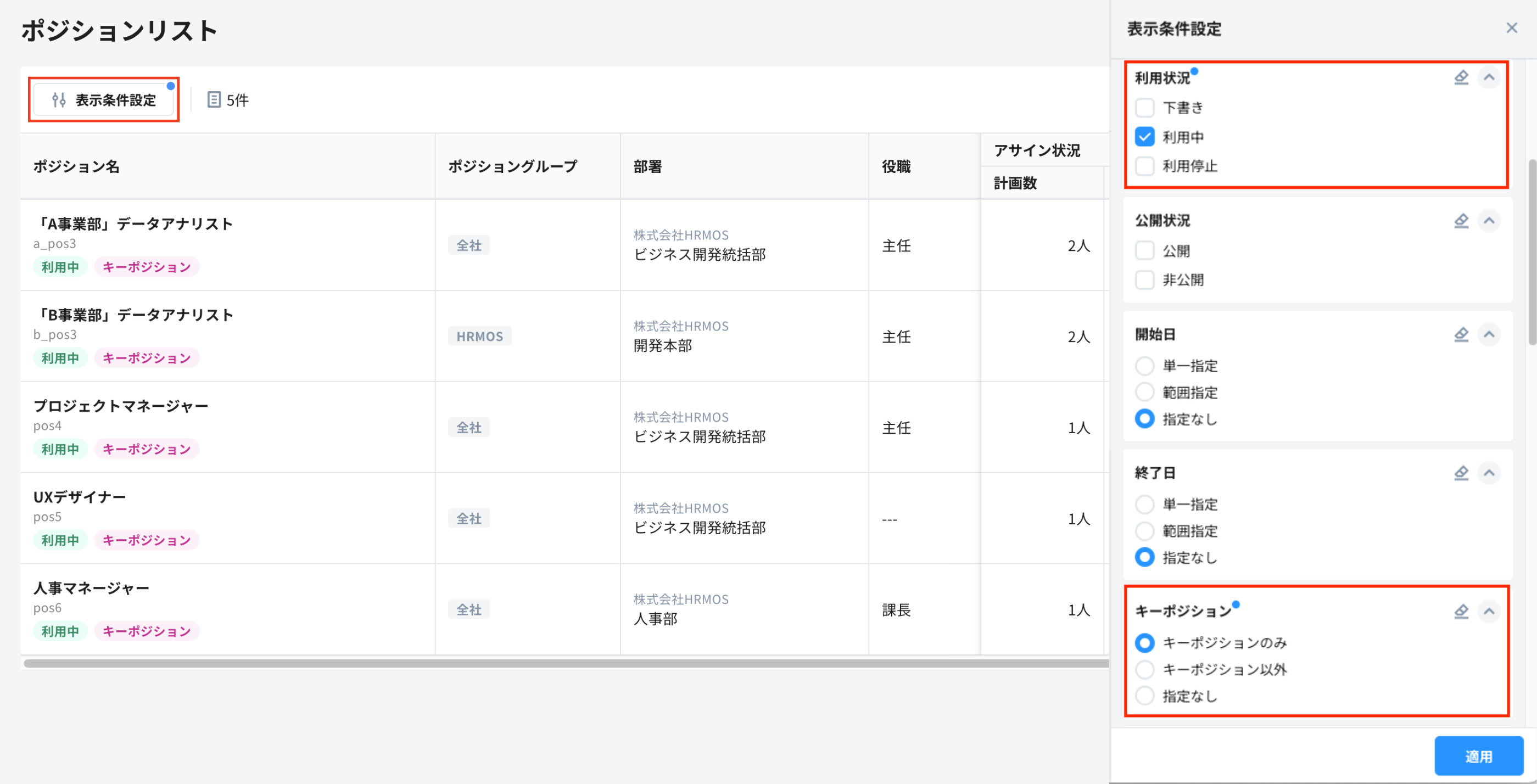 ポジションリストの表示条件を保存する