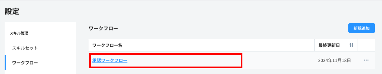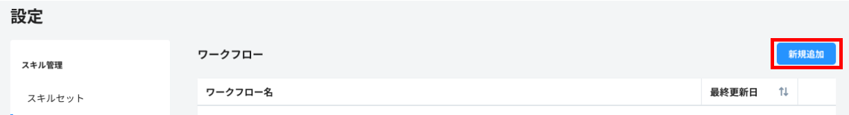画面内にある「新規追加」をクリックすると、ワークフローの新規追加画面が表示されます。