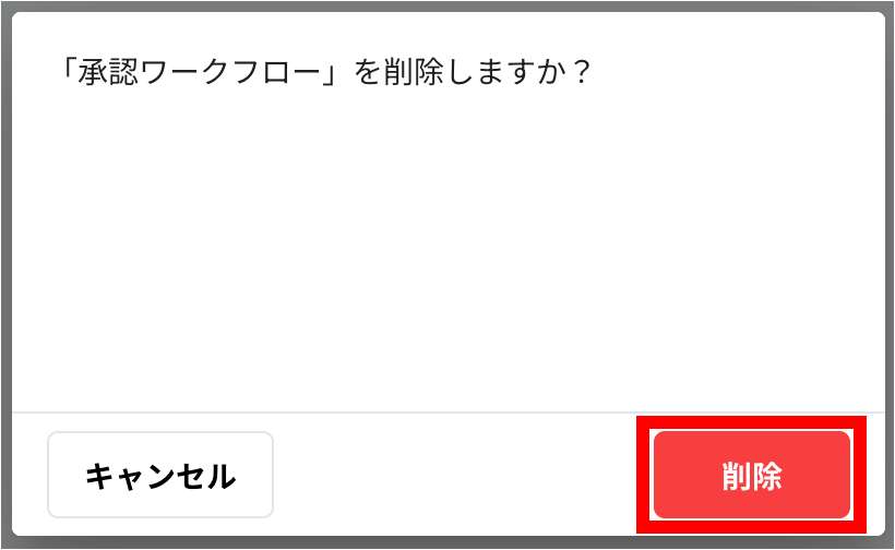 モーダルに表示されているワークフロー名を確認したのち、「削除」をクリックすると、削除されます。