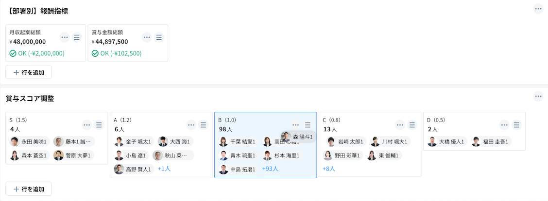 ・査定会議において、等級起案スコアをドラッグ&ドロップで調整する