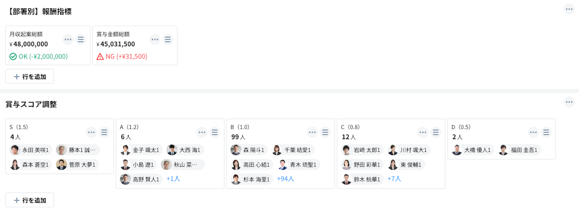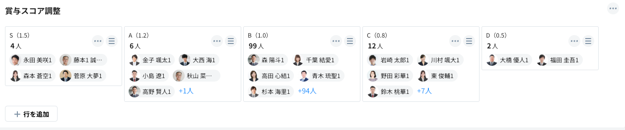 初期表示時は、各カード5名まで、被評価者が表示されます。