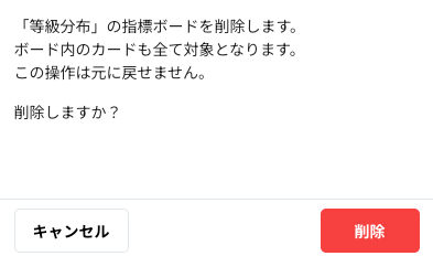 「ボードを削除」をクリックすると、以下の画面が表示されます。「削除」をクリックすることで、指標ボードが削除されます。