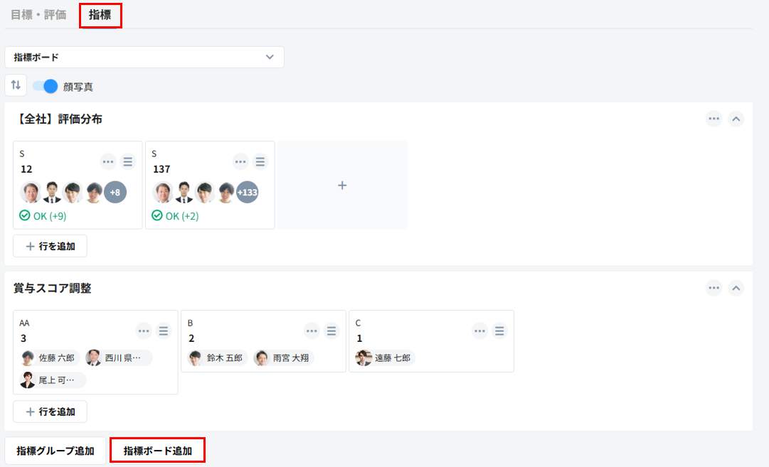 ・「指標カード」に表示される被評価者のアバターをドラッグ&ドロップすることで、評価スコアを調整することができます。