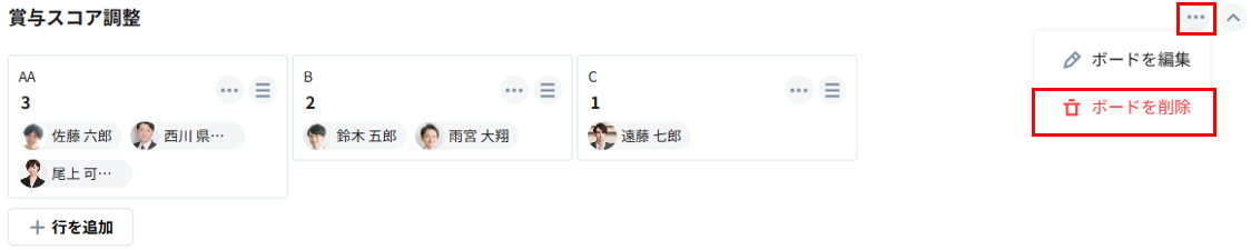 削除したい該当の指標ボード右端にある「三点リーダ」 > 「ボードを削除」をクリックすることで、指標ボードを削除することが可能です。