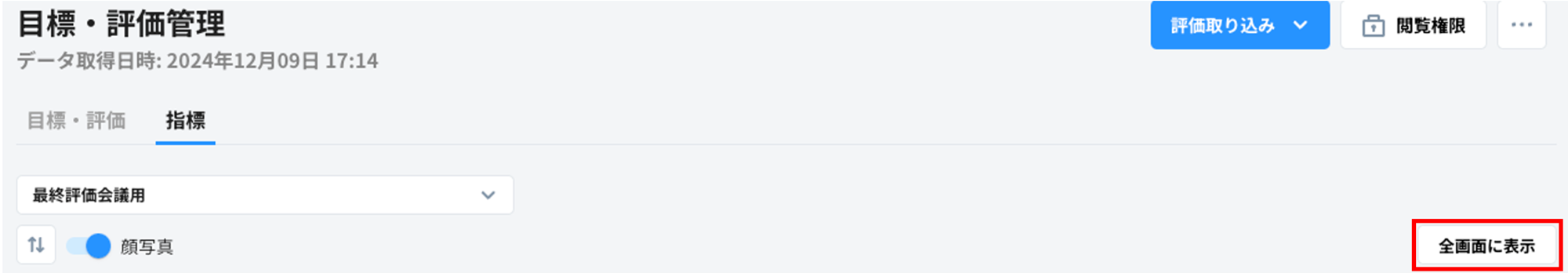 デフォルト画面の「全画面に表示」をクリックすると、全画面表示に切り替わり、各項目を閲覧しやすくなります。![]()