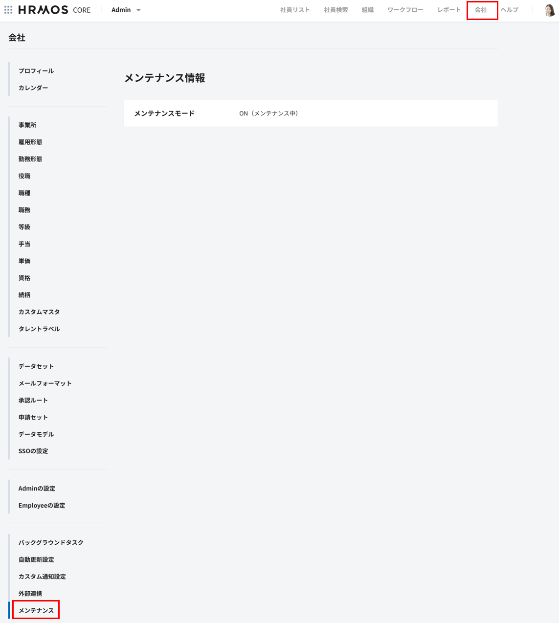 HRMOS COREには、お客様の環境の保守を目的とした「メンテナンスモード」という機能があります。