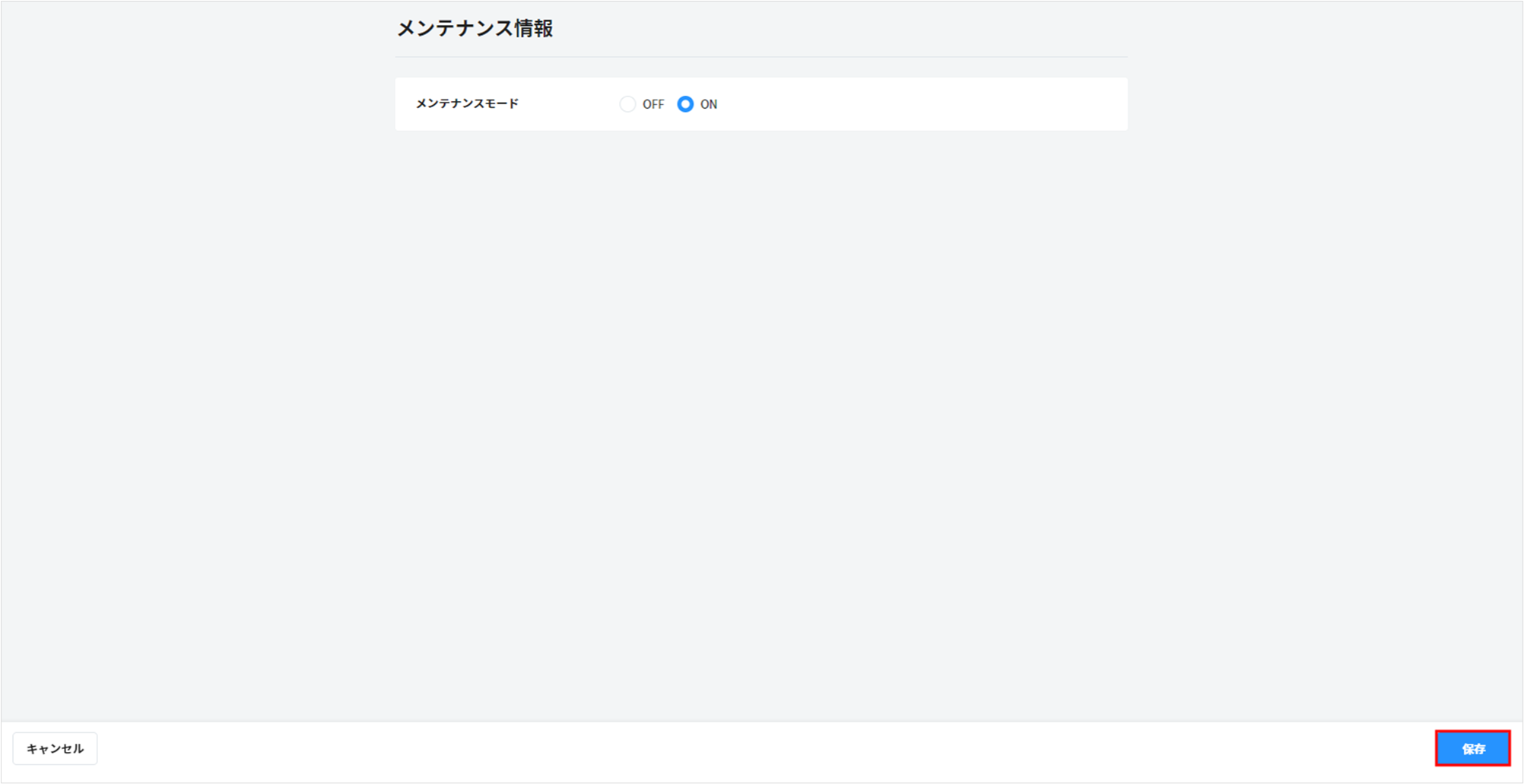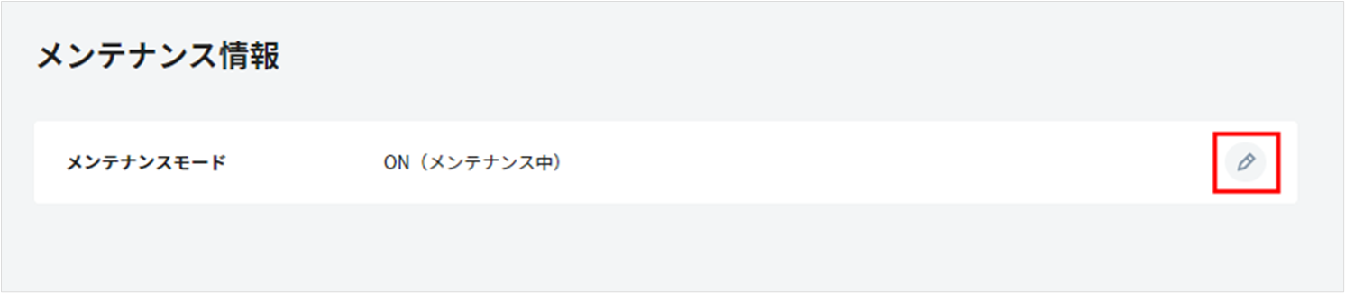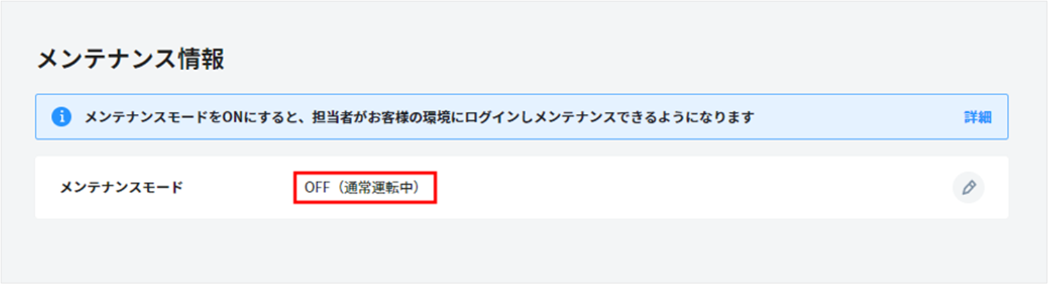 メンテナンスモードを「ON」にすると、弊社の担当者がお客様の環境を閲覧することが可能になり、お問い合わせの回答や仕様の調査をスムーズに行うことができます。