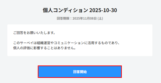 2. 回答する個人コンディションサーベイの「回答開始」をクリックします。