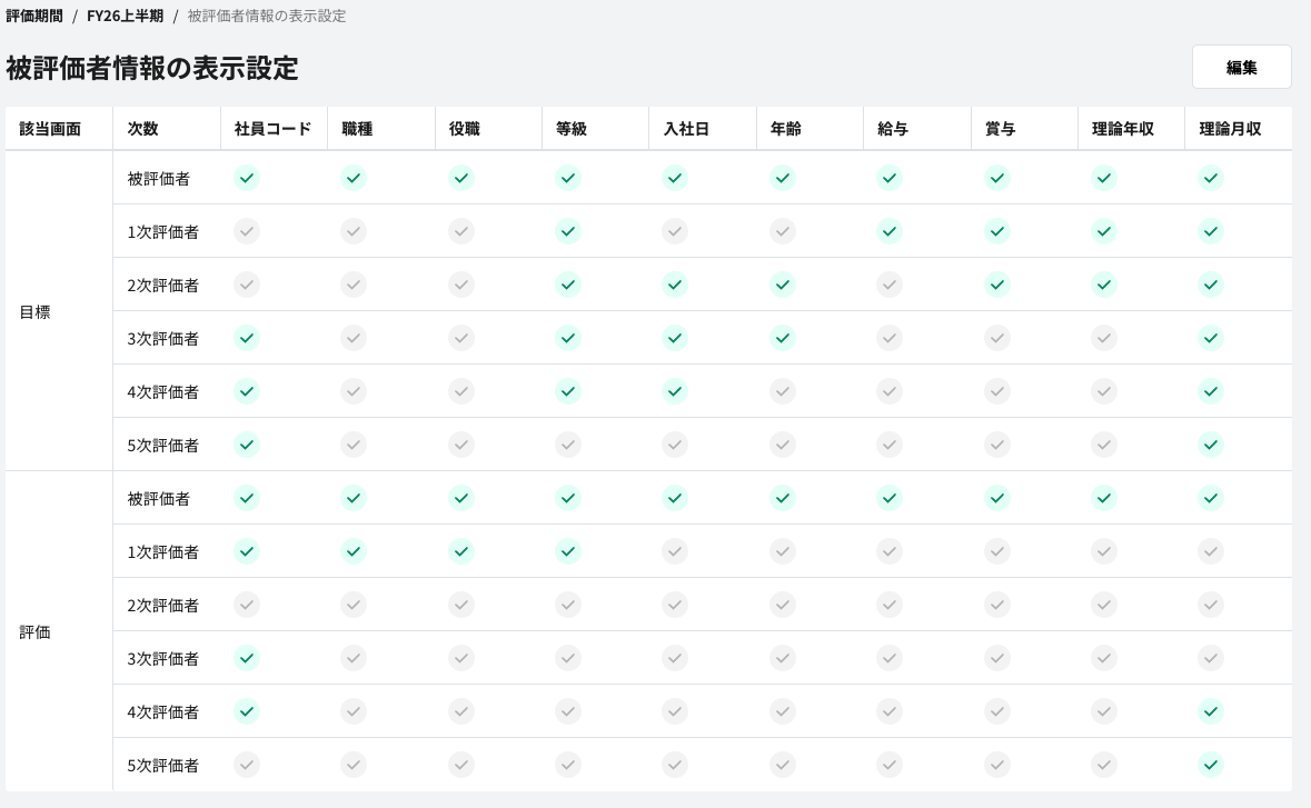 被評価者情報の設定と確認方法