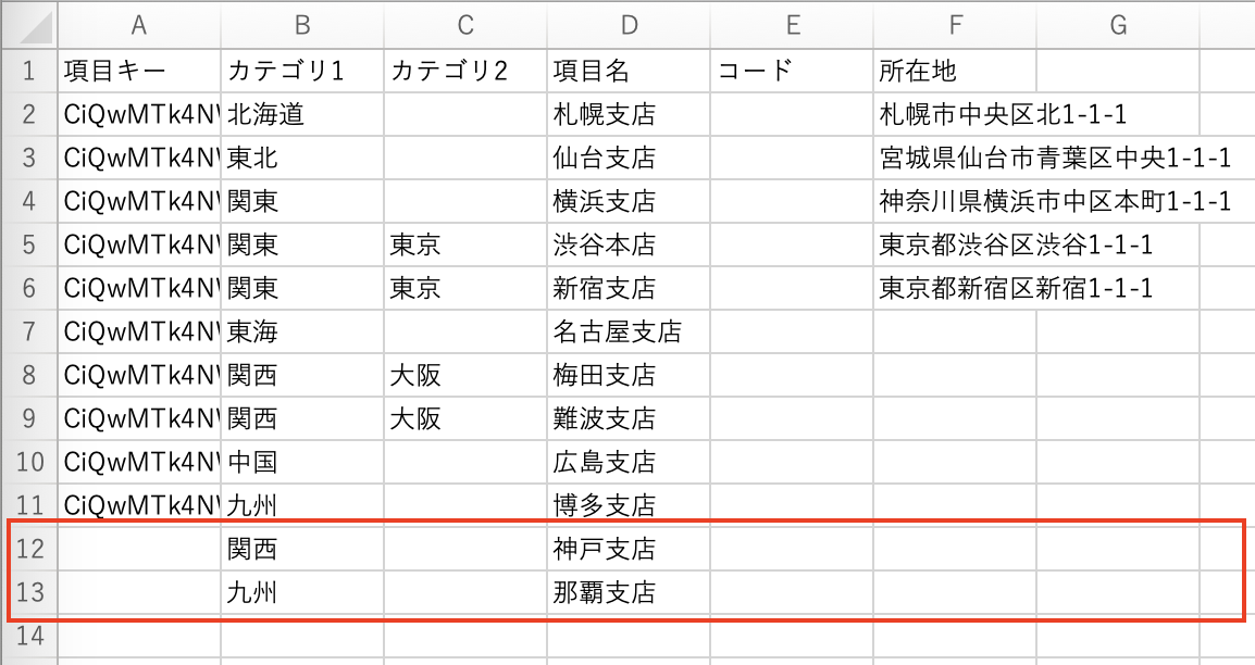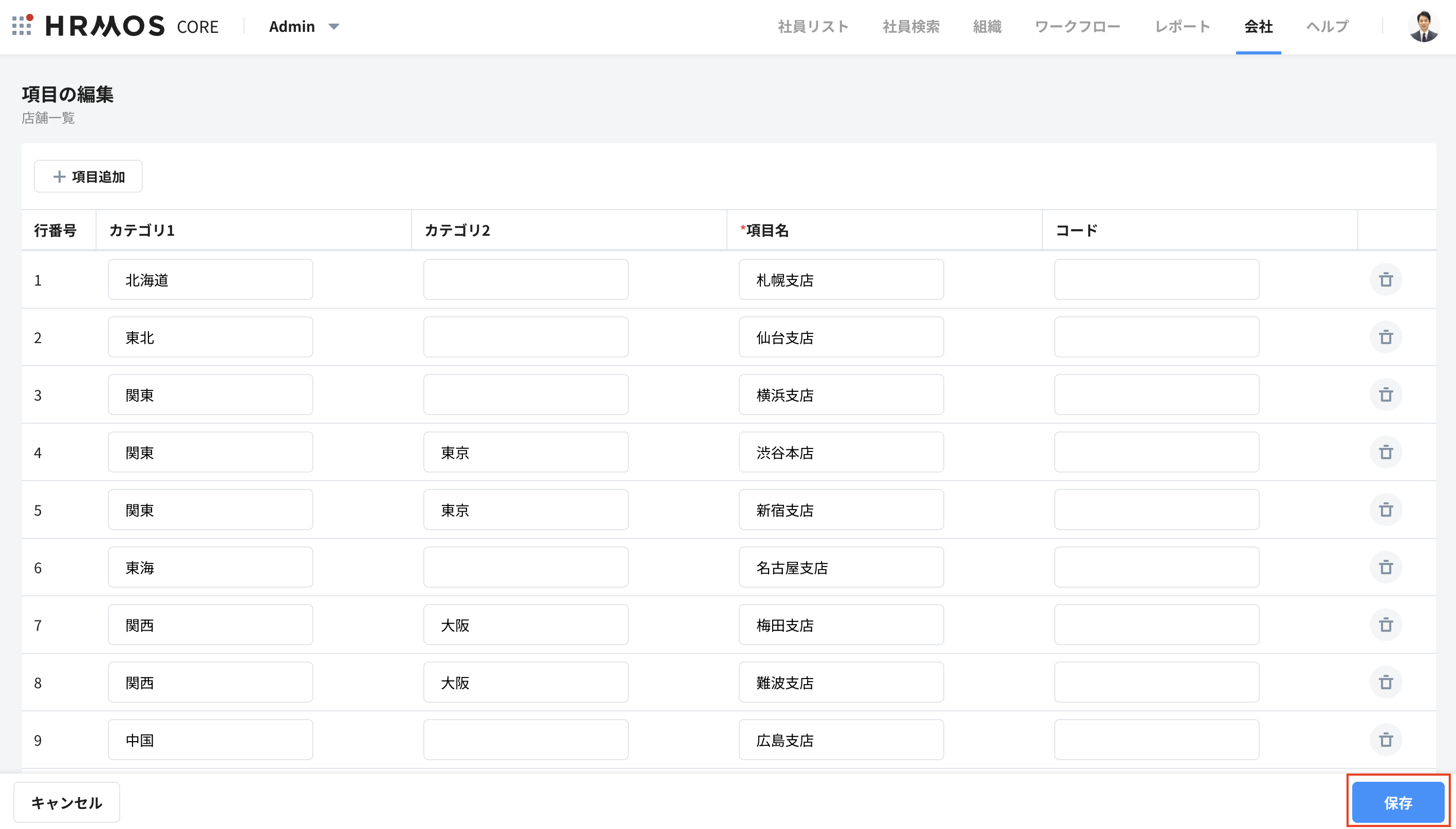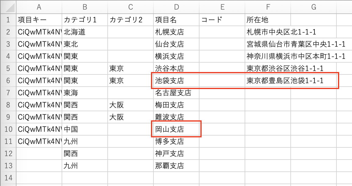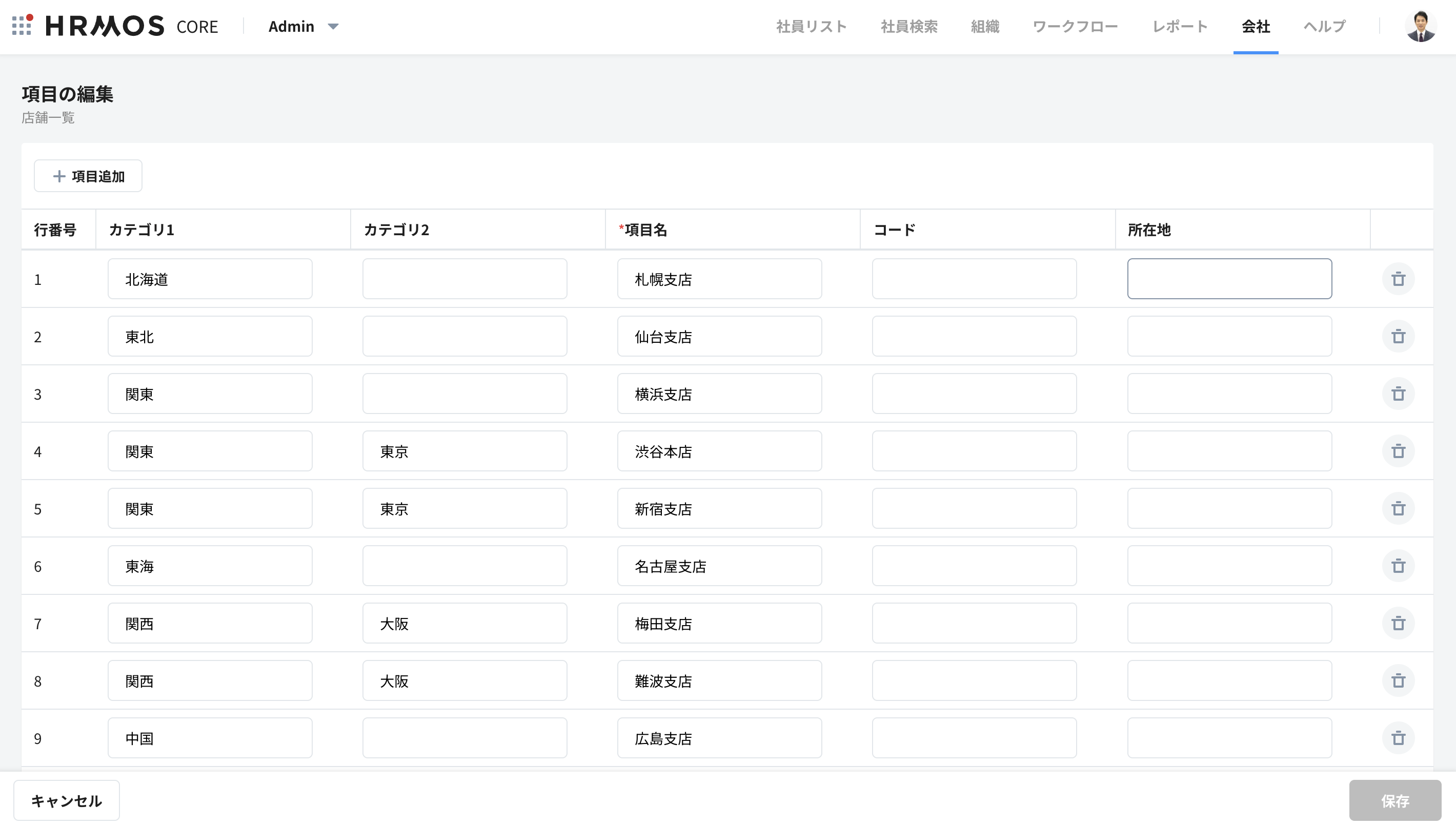 「店舗一覧」マスタで設定したマスタ項目に紐づく「所在地」が登録されていることを確認できます。
