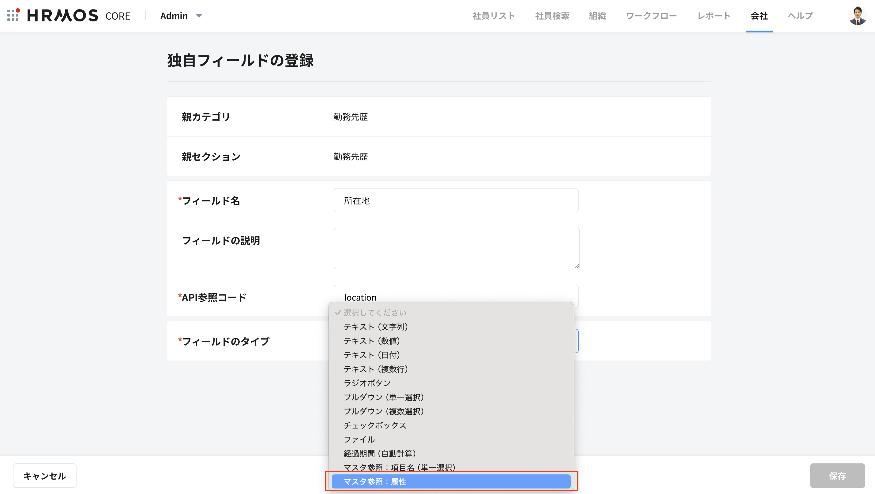 「属性」を社員情報のフィールドに設定しておくことで、マスタ項目の登録に応じて社員情報を自動登録するといった運用が実現できます。