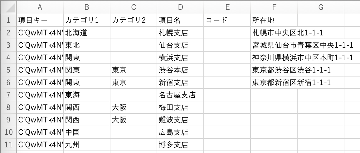 ここでは、例として、「勤務先店舗」情報で用いる「店舗一覧」マスタを用意する、を想定して説明します。