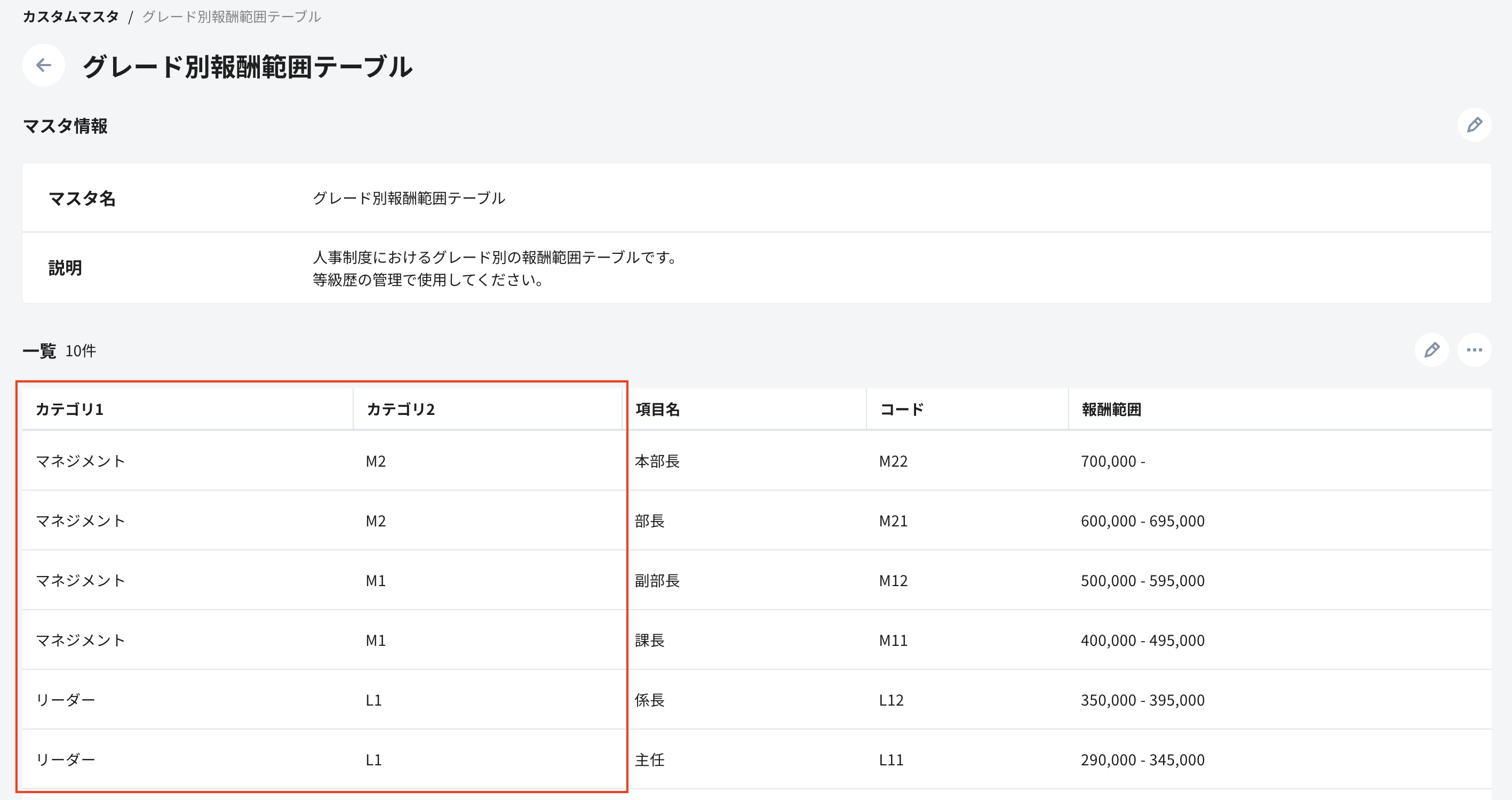 マスタ項目をカテゴリごとにグルーピングして管理できます。