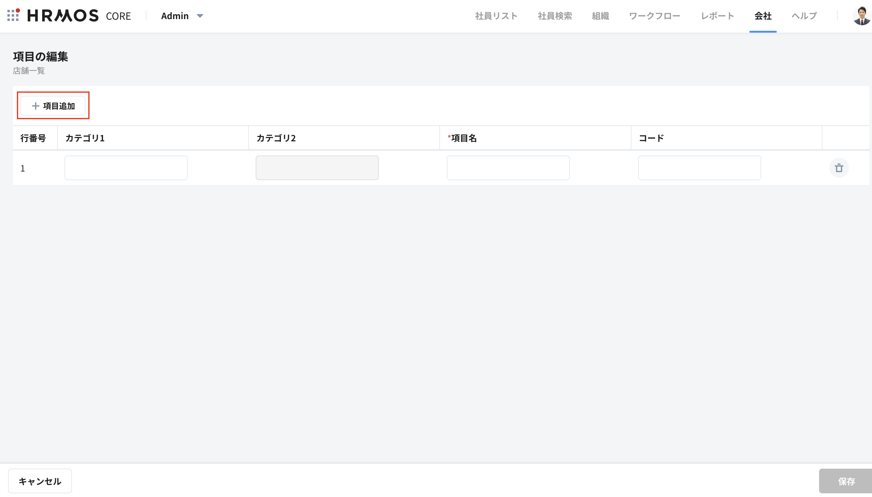 「項目追加」からマスタ項目の行を用意して、マスタ項目情報を入力します。