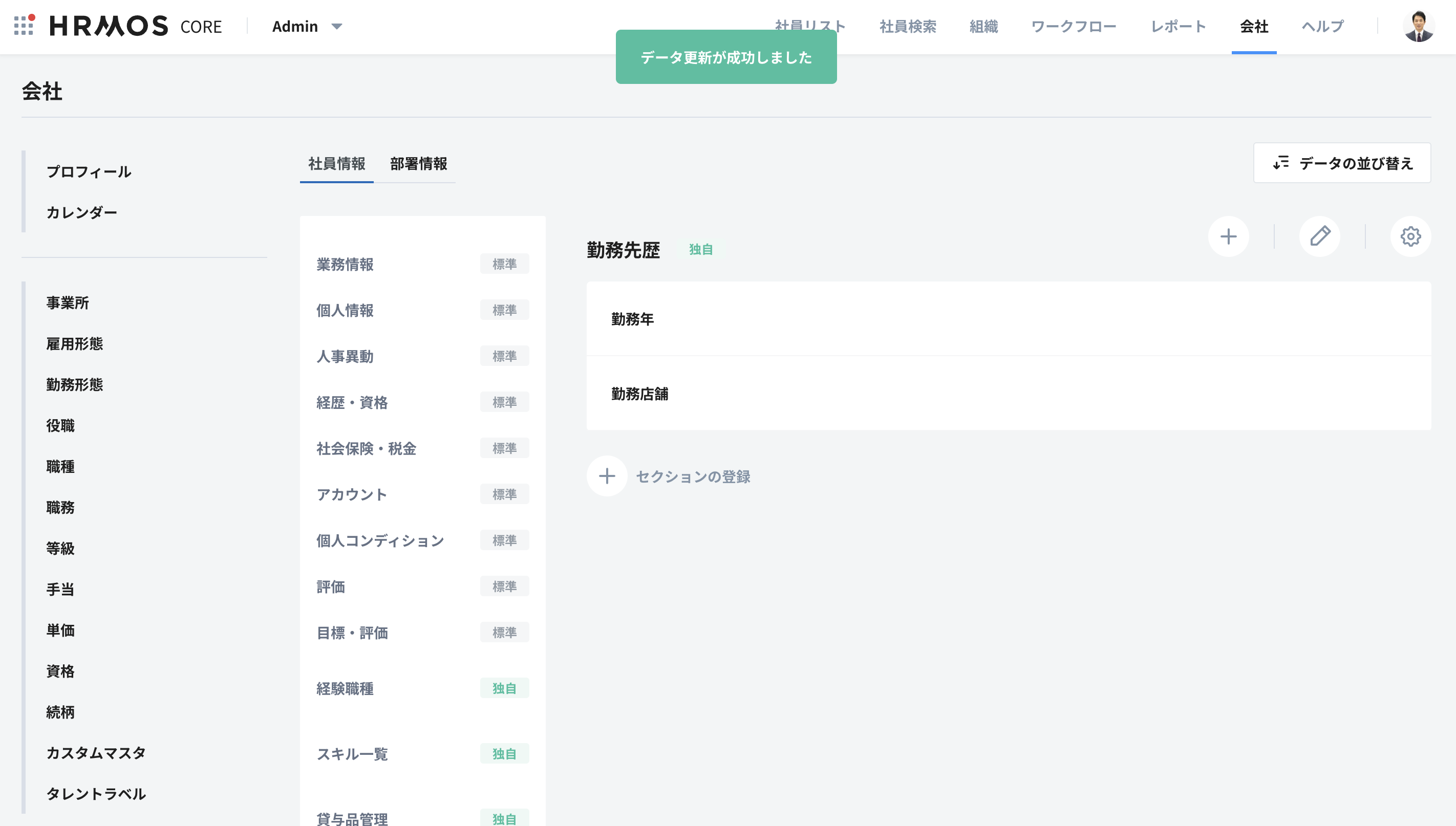 これで、カスタムマスタを社員情報で利用する設定は完了となります。