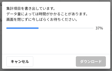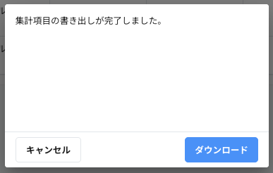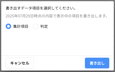 モーダル内にある「集計項目」か「判定」を選択してから、「書き出し」をクリックすると、スキル情報の集計結果、判定結果の取得が開始されます。