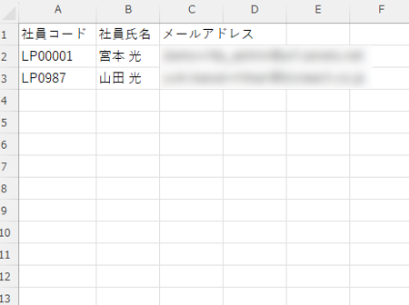2. ダウンロードしたファイルに、スカウトを受信可能な社員として登録したい社員を入力します。